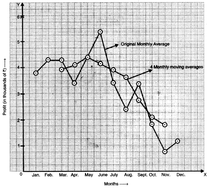 Calculate four monthly moving averages and plot these and the original data on a graph sheet.