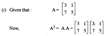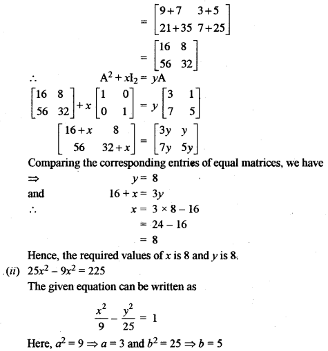 (i) If \(A=\left[\begin{array}{ll}{3} & {1} \\ {7} & {5}\end{array}\right]\), find the values of x and y such that A2 + xI2 = yA.