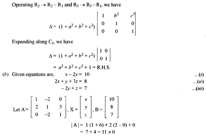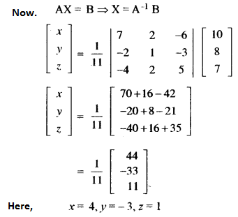 x – 2y = 10, 2x + y + 3z = 8 and -2y + z = 7