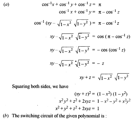 (a) If \(\cos ^{-1} x+\cos ^{-1} y+\cos ^{-1} z=\pi\), prove that \(x^{2}+y^{2}+z^{2}+2 x y z=1\) [5]
