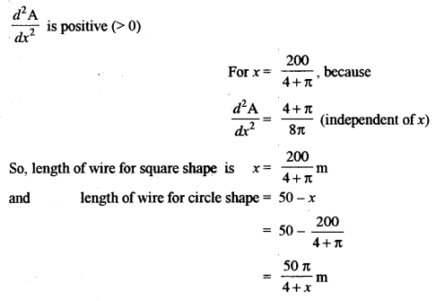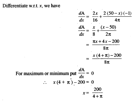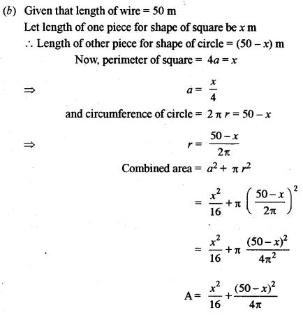 (b) A wire of length 50 m is cut into two pieces. One piece of the wire is bent in the shape of a square and the other in the shape of a circle. What should be the length of each piece so that the combined area of the two is minimum? [5]