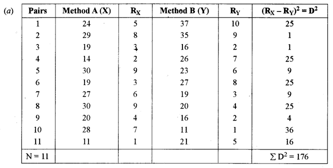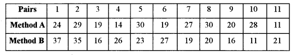 (a) A psychologist selected a random sample of 22 students. He grouped them in 11 pairs so that the students in each pair have nearly equal scores in an intelligence test. In each pair, one student was taught by method A and the other by method B and examined after the course. The marks obtained by them after the course are as follows: [5]