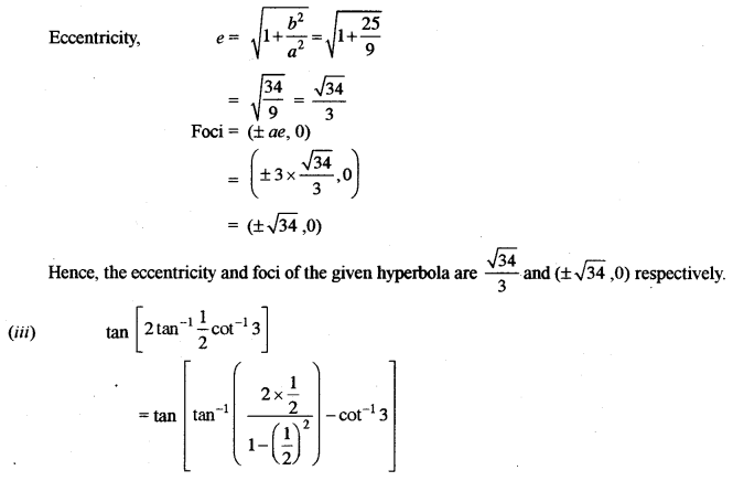 (iii) Evaluate: \(\tan \left[2 \tan ^{-1} \frac{1}{2}-\cot ^{-1} 3\right]\)