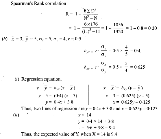 (b) The coefficient of correlation between the values denoted by X and Y is 0.5. The mean of X is 3 and that of Y is 5. Their standard deviations are 5 and 4 respectively. Find:
