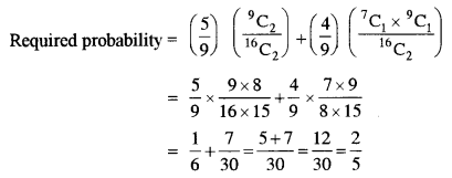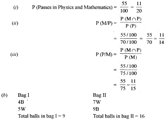 (b) A bag contains 5 white and 4 black balls and another bag contains 7 white and 9 black balls. A ball is drawn from the first bag and two balls are drawn from the second bag. What is the probability of drawing one white and two black balls? [5]