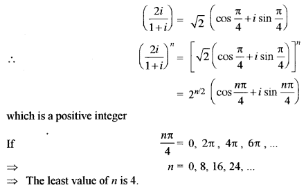 (a) Using De Moivre’s theorem, find the least positive integer n such that \(\left(\frac{2 i}{1+i}\right)^{n}\) is a positive integer. [5]