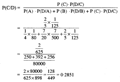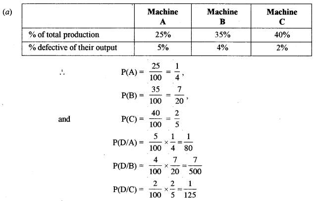 (a) In a bolt factory, three machines A, B and C manufacture 25%, 35% and 40% of the total production respectively. Of their respective outputs, 5%, 4% and 2% are defective. A bolt is drawn at random from the total production and it is found to be defective. Find the probability that it was manufactured by machine C. [5]