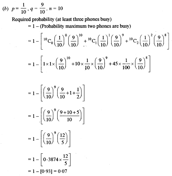 (b) One dialling certain telephone numbers assume that on an average, one telephone number out of five is busy, Ten telephone numbers are randomly selected and dialled. Find the probability that at least three of them will be busy. [5]