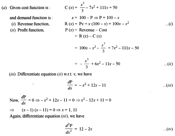 (a) A firm has the cost function \(C=\frac{x^{3}}{3}-7 x^{2}+111 x+50\) and demand function x = 100 – p.