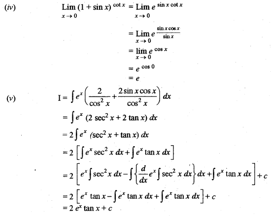 (iv) Using L’Hospital’s Rule, evaluate: \(\lim _{x \rightarrow 0}(1+\sin x)^{\cot x}\)