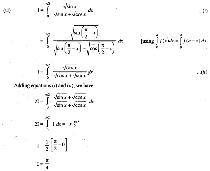 (vi) Using properties of definite integrals, evaluate \(\int_{0}^{\pi / 2} \frac{\sqrt{\sin x}}{\sqrt{\sin x}+\sqrt{\cos x}} d x\)