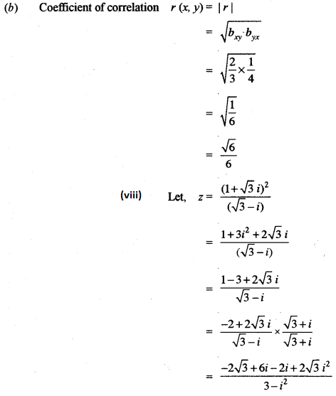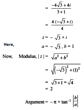 (viii) Express the complex number \(\frac{(1+\sqrt{3} i)^{2}}{\sqrt{3}-i}\) in the form of a + ib. Hence, find the modulus and argument of the complex number.