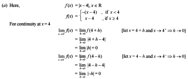 (a) Show that the function f(x) = |x – 4|, x ∈ R is continuous, but not differentiable at x = 4.