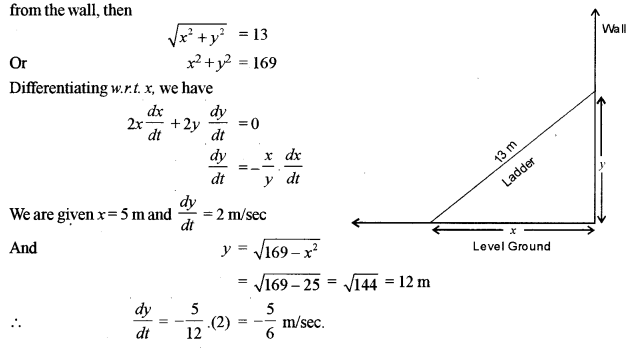 A 13 m long ladder is leaning against a wall, touching the wall at a certain height from the ground level. The bottom of the ladder is pulled away from the wall, along the ground, at the rate of 2 m/s. How fast is the height on the wall decreasing when the foot of the ladder is 5 m away from the wall?