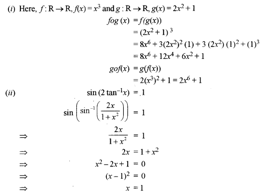 (i) If f: R → R, f(x) = x3 and g: R → R, g (x) = 2x2 + 1, and R is the set of real numbers, then find fog(x) and gof(x).