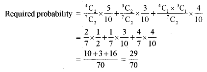 (ix) Two balls are drawn from an urn containing 3 white, 5 red and 2 black balls, one by one without replacement. What is the probability that at least one ball is red?