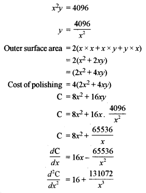 (a) The volume of a closed rectangular metal box with a square base is 4096 cm3. The cost of polishing the outer surface of the box is ₹ 4 per cm2. Find the dimensions of the box for the minimum cost of polishing it.