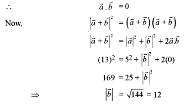 (a) If \(\vec { a }\) and \(\vec { b }\) are perpendicular vectors, \(\left| \vec { a } +\vec { b } \right| =13\) 13 and \(\left| \vec { a } \right|\) = 5. find the value of \(\left| \vec { b } \right|\).