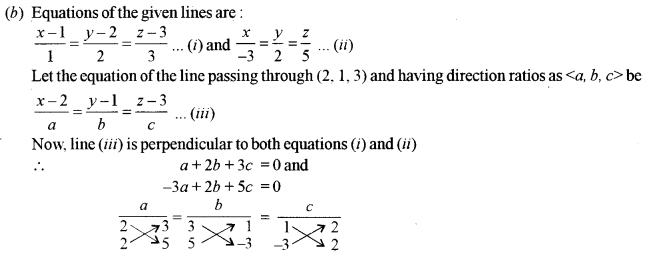 (b) Find the equation of the lines passing through the point (2, 1, 3) and perpendicular to the lines