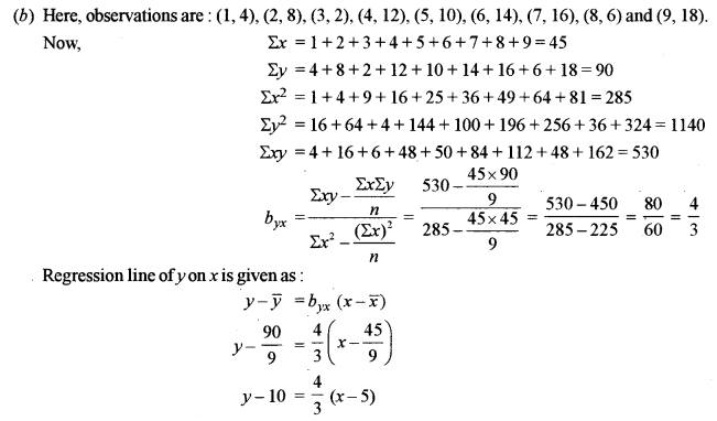 (b) Find the equation of the regression line of y on x, if the observations (x, y) are as follows: