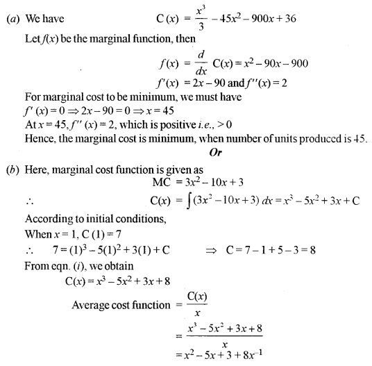 (b) The marginal cost function of x units of a product is given by MC = 3x2 – 10x + 3. The cost of producing one unit is ₹ 7. Find the total cost function and average cost function.