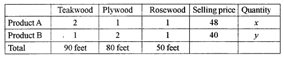 Let x units of product A and y units of product B be produced and sold by the carpenter. Then information given in the statement is tabulated as: