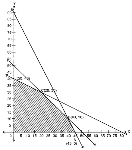 O(0, 0), A(45, 0), B(40, 0), C(20, 30) and D(0, 40).