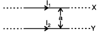(a) (i) Two conductors X and Y of infinite length and separted by a distance ‘a’ carry currents I1 and I2 respectively. The force of attraction per unit length is given by