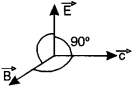 (a) (i) In an electromagnetic wave, how are electric vector \((\overrightarrow{\mathrm{E}})\), magnetic vector \((\overrightarrow{\mathrm{B}})\) and velocity of propagation of the wave \((\overrightarrow{\mathrm{C}})\) oriented ? [2]