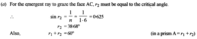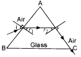 (a) At what angle, a ray of light should be incident on the first face AB of a regular glass prism ABC so that the emergent ray grazes the adjacent face AC ? [3]