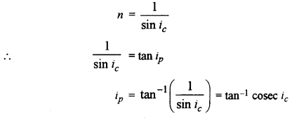 (vii) If ip is the polarising angle and n the refractive index of the medium, then n = tan ip If ic is the critical angle,then