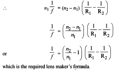 (c) Starting with an expression for refraction at a single spherical surface, obtain an expression for lens maker’s formula. [3]