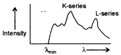 (b) (i) Draw a labelled graph showing variation of relative intensity of X-rays versus their wavelength λ. Mark λmin on the graph.