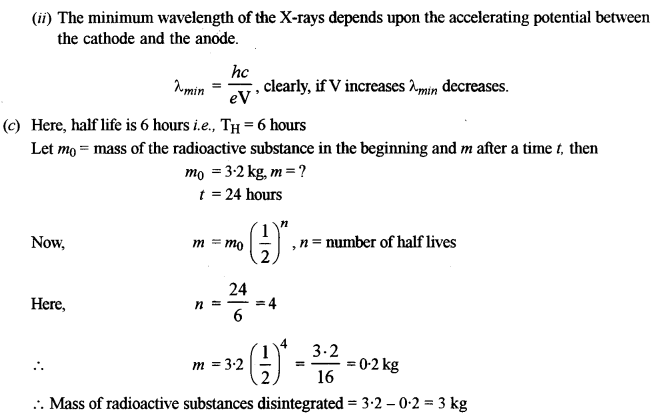 (c) Half life of a certain radioactive substance is 6 hours. If you had 3.2 kg of this substance in the beginning, how much of it will disintegrate in one day ? [2]