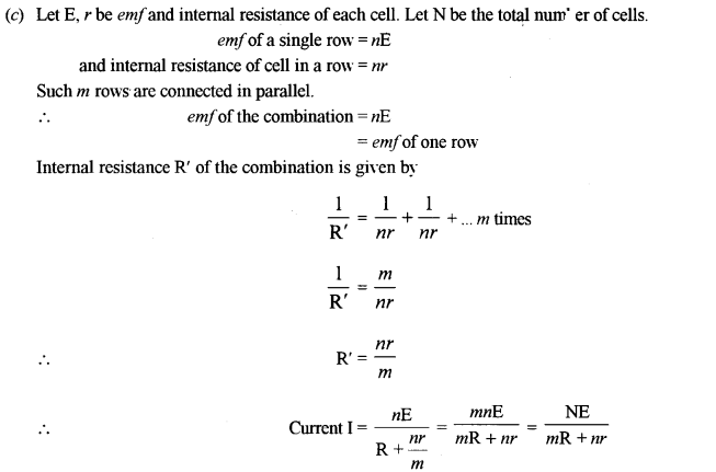 (c) ‘n’ cells, each of emf’e and internal resistance ‘r’ are joined in series to form a row. ‘m’ such rows are connected in parallel to form a battery of N = mn cells. This battery is connected to an external resistance ‘R’. [3]