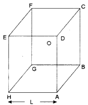 (i) A short electric dipole (which consists of two point charges, + q and – q) is placed at the center O and inside a large cube (A B C D E F G H) of length L, as shown in figure. The electric flux, emanating through the cube is: