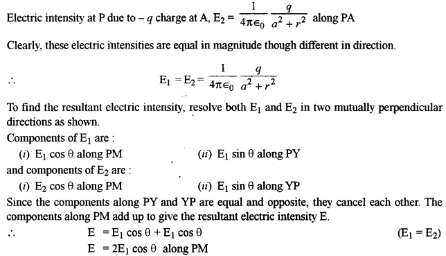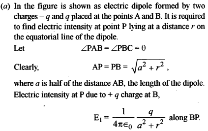 (a) In the figure is shown as electric dipole formed by two charges – q and q placed at the points A and B. It is required to find electric intensity at point P lying at a distance r on the equatorial line of the dipole.