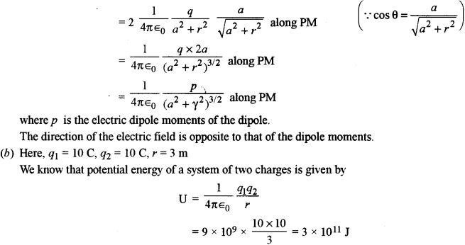 (b) Two point charges of 10 C each are kept at a distance of 3 m in vacuum. Calculate their electrostatic potential energy. [1]