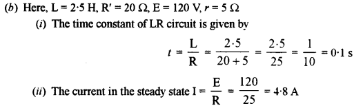 (b) A coil of self inductance 2.5 H and resistance 20 Ω is connected to a battery of emf 120 V having internal resistance of 5 Ω. Find : [2]
