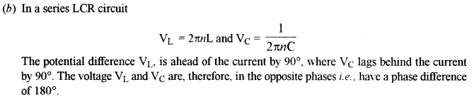 (b) In a series LCR circuit, what is the phase difference between VLand VC where VL is the potential difference across the inductor and VC is the potential difference across the capacitor ? [ 1 ]