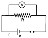 (ii) A resistor R is connected to a cell of emf e and internal resistance r. Potential difference across the resistor R is found to be V State the relation between e, V, R and r.