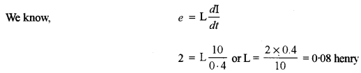 (v) An emf of 2 V is induced in a coil when current in it is changed from 0 A to 10 A in 0.40 sec. Find the coefficient of self-inductance of the coil.