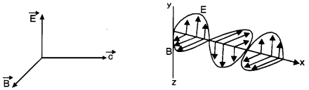 (vi) How are electric vector \(\overrightarrow{(E)}\), magnetic vector \(\overrightarrow{(B)}\) and velocity vector \(\overrightarrow{(C)}\) oriented in an electromagnetic wave ?