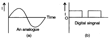 (xv) An analogue signal varies continues with time. They are single valued function of time. Thus, it can have different values. However, a digital signal has two discreet value 0 and 1.0 correspond to a low level and I to a high level. It is shown in fig. ‘a’ and ‘b’