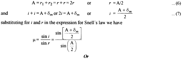 \(n=\frac{\sin \left(\frac{\mathrm{A}+\delta_{m}}{2}\right)}{\sin \left(\frac{\mathrm{A}}{2}\right)}\)