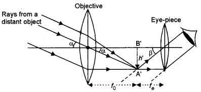 (a) Draw a labelled ray diagram of an image formed by a refracting telescope with Final image formed at infinity. Derive an expression for its magnifying power with the final image at infinity.