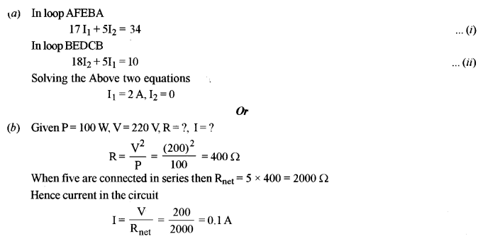 (b) An electric bulb is marked 200 V, 100 W. Calculate electrical resistance of its filament. If five such bulbs are connected in series to a 200 V supply, how much current will flow through them ?