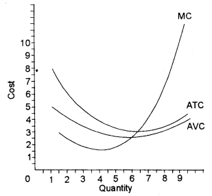 (a) Draw the average variable cost and average total cost curves. Do they intersect each other? Give one reason for your answer. [4]