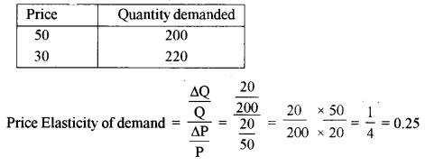 (b) The price of a commodity falls from Rs. 50 to Rs. 30, resulting in an increase in the purchase of the commodity from 200 units to 220 units. Calculate the price elasticity of demand. [4]