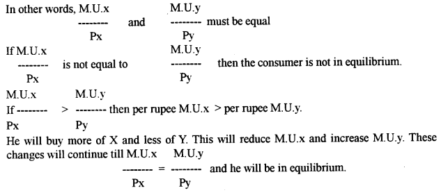 He will get maximum satisfaction if he buys only that quantity of each good that gives him the same utility from the last rupee spent on each good.